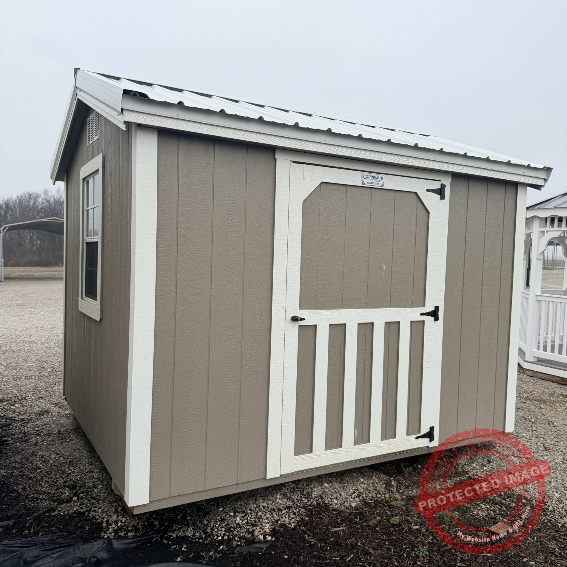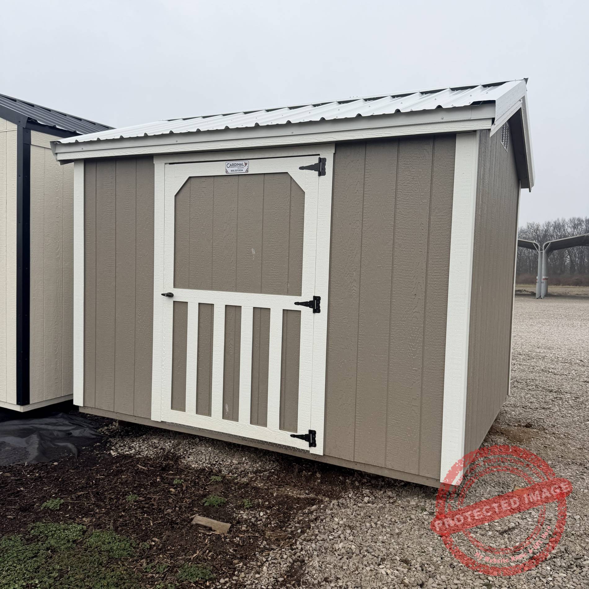In stock 8 x 10 shed manufactured by Cardinal Portable Buildings LLC.